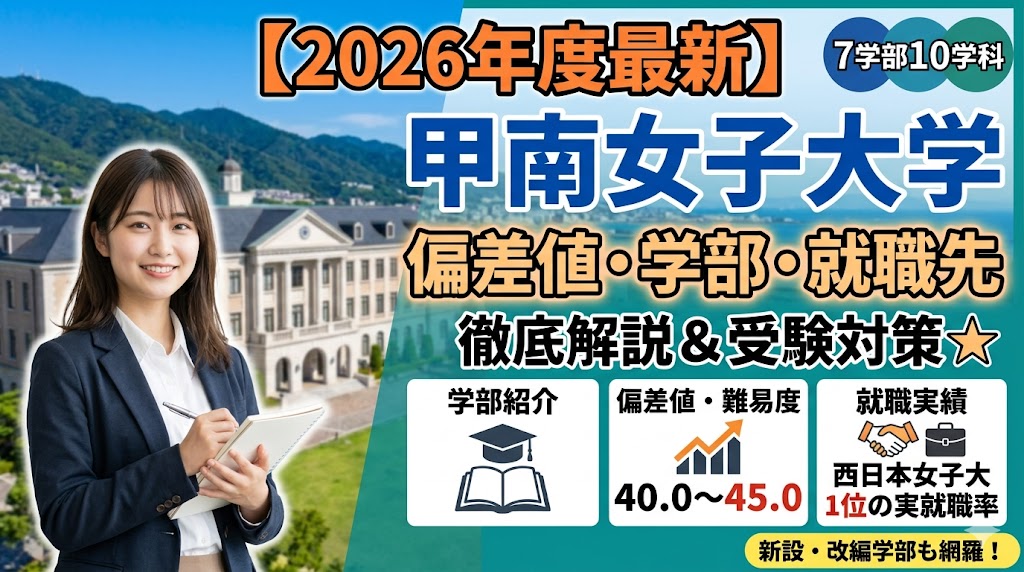 本記事では、教育業界で10年以上のキャリアを持つ視点から、甲南女子大学の最新学部情報、偏差値、驚異の就職実績、そして合格を勝ち取るための科目別受験対策を、圧倒的ボリュームで徹底解説します!